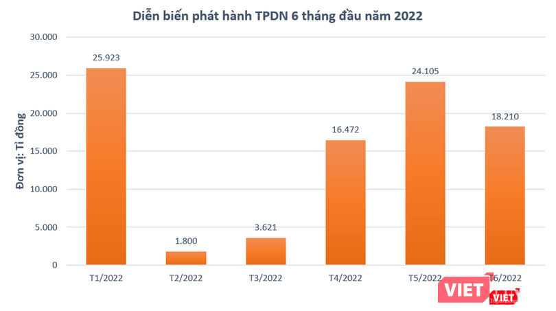 Theo Hiệp hội thị trường trái phiếu Việt Nam (VBMA), trong tháng 6/2022, có 26 đợt phát hành trái phiếu doanh nghiệp riêng lẻ với giá trị đạt 18.210 tỉ đồng và 1 đợt phát hành trái phiếu quốc tế trị giá 100 triệu USD của CTCP Vingroup.