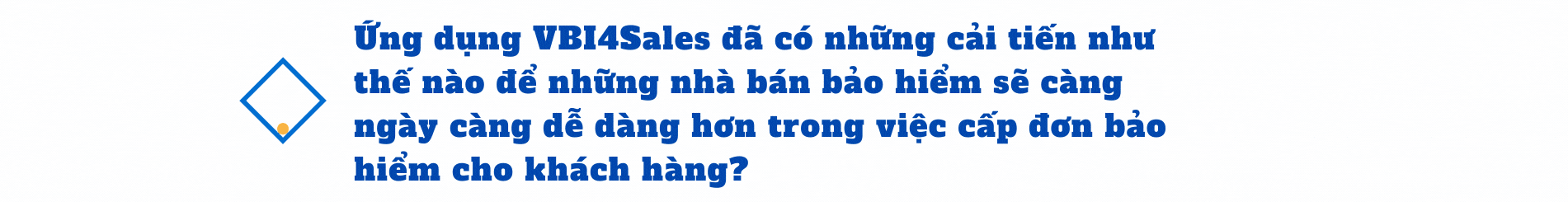 Trên cơ sở App VBI4Sales, chúng tôi cũng đã đưa thêm những công cụ hỗ trợ cho người bán như công cụ Chatbot hiểu ngôn ngữ tự nhiên, giúp người bán có thể tìm hiểu kĩ hơn về các sản phẩm, dịch vụ của VBI trước khi tư vấn cho khách hàng.