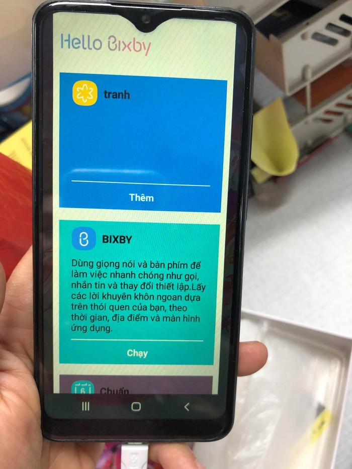 Qua hình ảnh được chị Chi cung cấp, có thể thấy phần hộp, thiết kế máy, phụ kiện và cả các chi tiết phần mềm đều rất "dại", sao chép chi tiết của Samsung nhưng không giống.