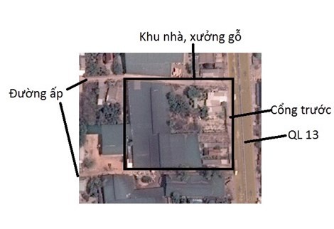 Ngôi nhà của ông Lê Văn Mỹ sinh năm 1968, (tổ 3, ấp 2 xã Minh Hưng, huyện Chơn Thành tỉnh Bình Phước) phía sau là xưởng gỗ thông liền với nhà chính, trước là đường QL13. Ngôi nhà này đồng thời là trụ sở công ty TNHH khai thác chế biến gỗ Quốc Anh.
