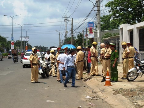 Lực lượng chức năng tập trung bảo vệ hiện trường.