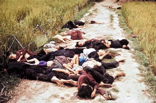 Hình ảnh hai đứa trẻ Việt Nam đang che chở cho nhau trước họng súng lính Mỹ. Đứa trẻ bên ngoài lớn hơn và dường như là anh. Tuy nhiên, hình ảnh đầy thương cảm đó không làm động lòng lính Mỹ. Hai đứa trẻ vẫn bị bắn bởi những kẻ gây ra vụ thảm sát. Họ điên cuồng tuân thủ mệnh lệnh “thấy động là giết” của chỉ huy.