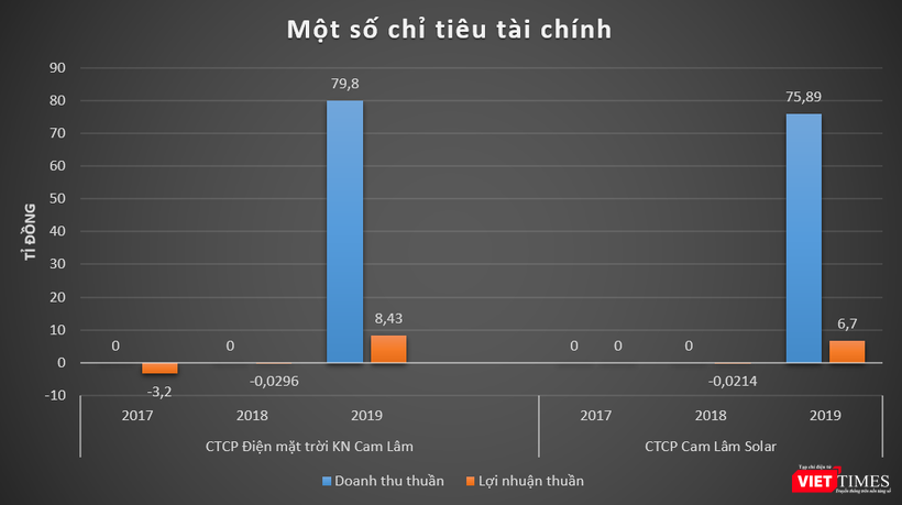 Dữ liệu của VietTimes cho thấy, dù chỉ hoạt động trong nửa cuối năm 2019, song KN Cam Lâm và Cam Lâm Solar lần lượt ghi nhận doanh thu thuần đạt 79,8 tỉ đồng và 75,89 tỉ đồng; tuy nhiên, các khoản chi phí khiến lãi thuần tương ứng chỉ ở mức 8,43 tỉ đồng và 6,7 tỉ đồng.