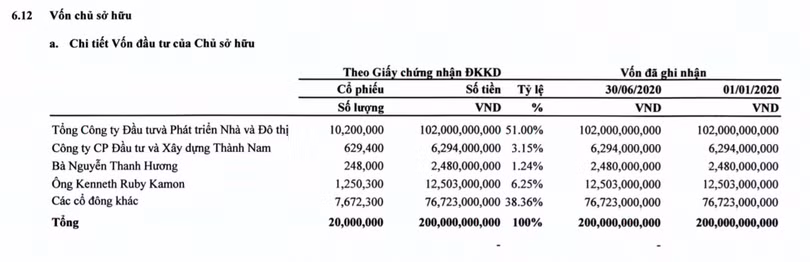 | Cổ đông đáng chú ý tại Hudland Tính đến ngày 30/6/2020, quy mô vốn chủ sở hữu của Hudland vẫn được giữ ở mức 200 tỷ đồng. Trong đó, HUD vẫn là công ty mẹ, chiếm tỷ lệ 51%. Theo sau là ông Kenneth Ruby Kamon với tỷ lệ sở hữu 6,25%. Đáng chú ý, cơ cấu cổ đông của Hudland còn ghi nhận sự tham gia của CTCP Đầu tư và Xây dựng Thành Nam (nay là CTCP Tập đoàn Cotana – Mã CK: CSC) với tỷ lệ sở hữu 3,15%.