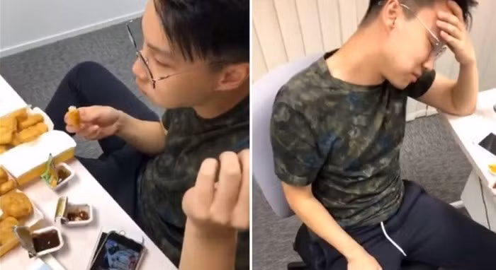 Trọn vẹn đoạn livestream thực hiện thử thách ăn miếng gà McNuggets của chàng thanh niên Hồng Kông