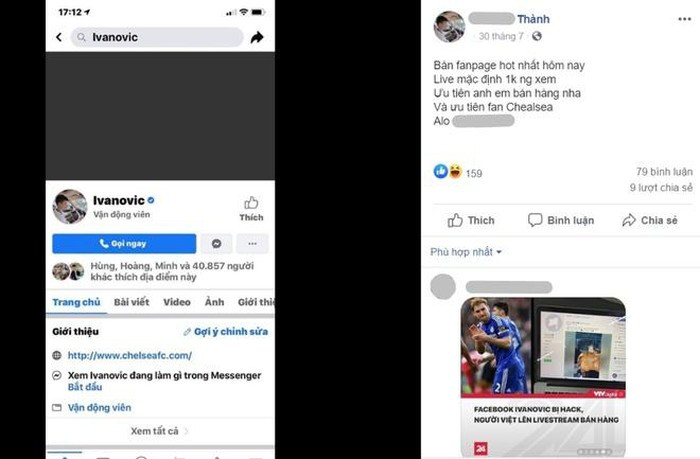 Chiều 31/7, fanpage tick xanh của cựu cầu thủ Ivanovic đăng tải video livestream bởi một người Việt. Người này tương tác trực tiếp và trả lời những người bình luận bên dưới video chỉ sau 1 ngày Zing đưa tin trang Facebook Ivanovic bị hack lan truyền.
