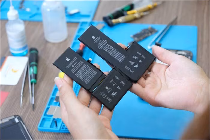 Pin iPhone 11 Pro Max (bên phải) là khối liền mạch.