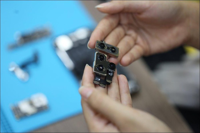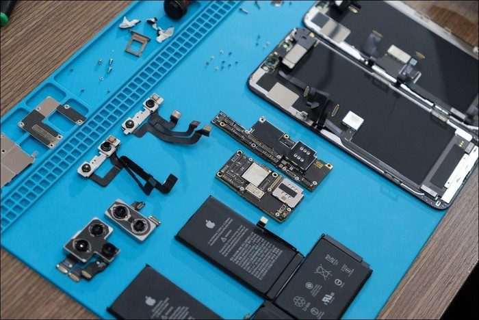 Kỹ thuật viên mở máy cho biết chiếc máy khá phức tạp, tích hợp nhiều công nghệ mới và có thêm những cải tiến so với người tiền nhiệm iPhone Xs Max.