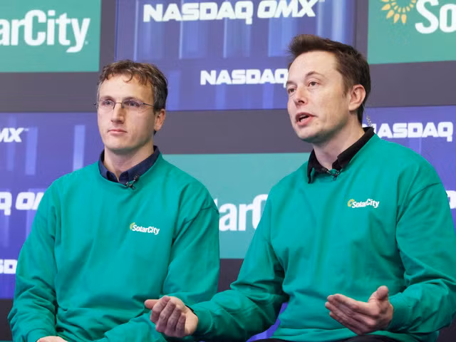 CEO của Tesla là Elon Musk bên cạnh CEO của SolarCity Lyndon Rive