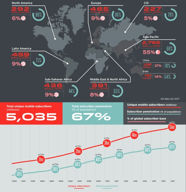 Thật vậy, dữ liệu của GSMA cho thấy rằng, mức thâm nhập điện thoại di động trên toàn cầu hiện nay là khoảng 67%. Nhưng khi đào sâu vào dữ liệu khu vực cụ thể cho thấy cả Bắc Mỹ và Châu Âu là hơn 80%, với vùng châu Phi cận Sahara chỉ còn 44%.