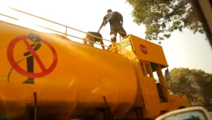 Những người tiểu bậy trên đường phố Ấn Độ có thể bị phun nước vào người. Ảnh cắt từ clip.