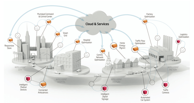 50 tỉ thiết bị được kết nối vào năm 2020; đây là một con số khổng lồ và sẽ tạo ra một lượng dữ liệu vô cùng lớn được thu thập từ các thiết bị trong mạng IoT. Điều này đòi hỏi phải có nền tảng đủ mạnh và linh hoạt để phân tích, lưu trữ; đồng thời có khả năng phát triển các ứng dụng tương hỗ với IoT. Những yêu cầu trên sẽ hoàn toàn được đáp ứng, nếu chúng ta triển khai IoT kết hợp với hạ tầng điện toán đám mây (Cloud Computing).