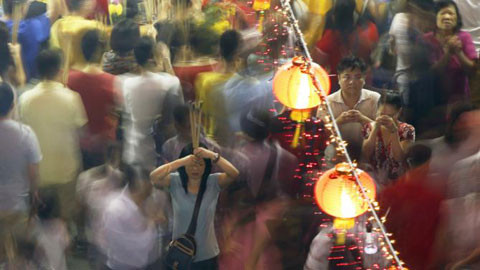 Người dân tại một ngôi đền ở Singapore thắp hương khấn cầu một năm mới bình an. (Ảnh: Reuters)