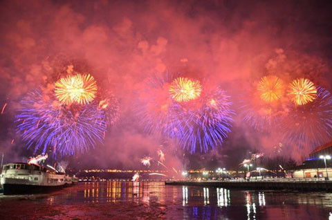 Cộng đồng người Hoa ở Mỹ tổ chức bắn pháo hoa đón chào năm mới bên sông Hudson, New York. (Ảnh: China.org.cn)