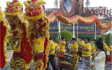 Múa sư tử ở thủ đô Phnom Penh của Campuchia. (Ảnh: Reuters)