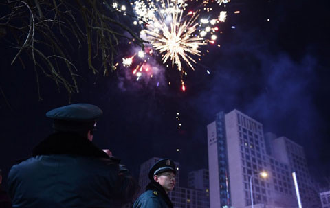 Pháo hoa đón Giao thừa tại thủ đô Bắc Kinh của Trung Quốc. (Ảnh: CNN)