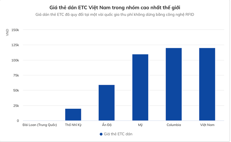 Theo khảo sát của Zing, tại những nước sử dụng công nghệ RFID, dán thẻ e-tag lên phương tiện, chi phí để dán và đăng kí sử dụng dịch vụ thu phí tự động cũng có sự chênh lệch nhất định.