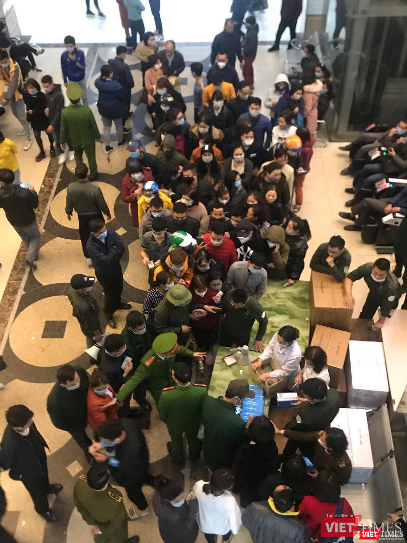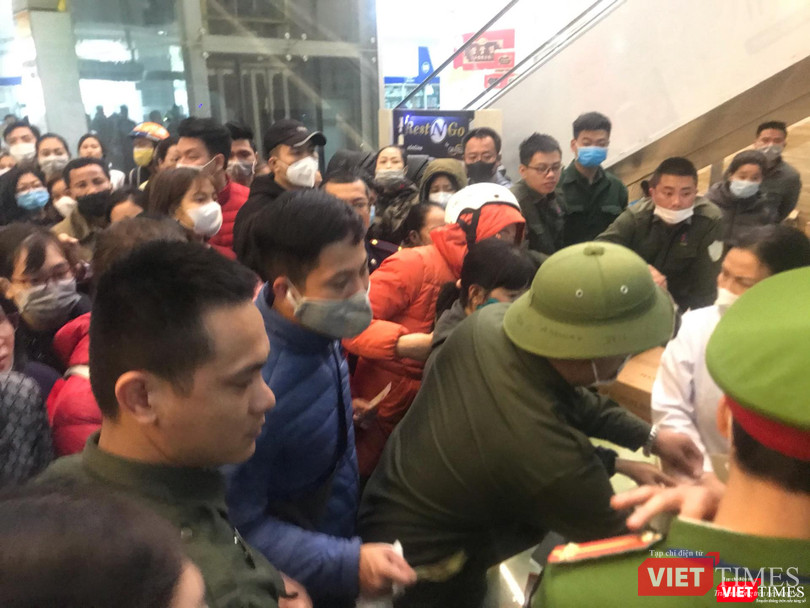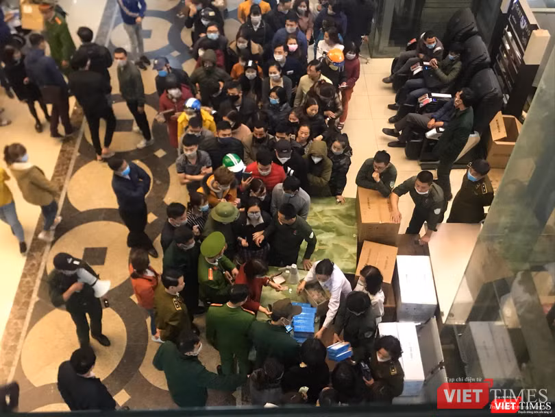 Ngay sau đó, cơ quan công an đã có mặt giám sát hoạt động bán mua tại chợ thuốc Hapulico, hướng dẫn người dân xếp hàng mua khẩu trang y tế trong trật tự.