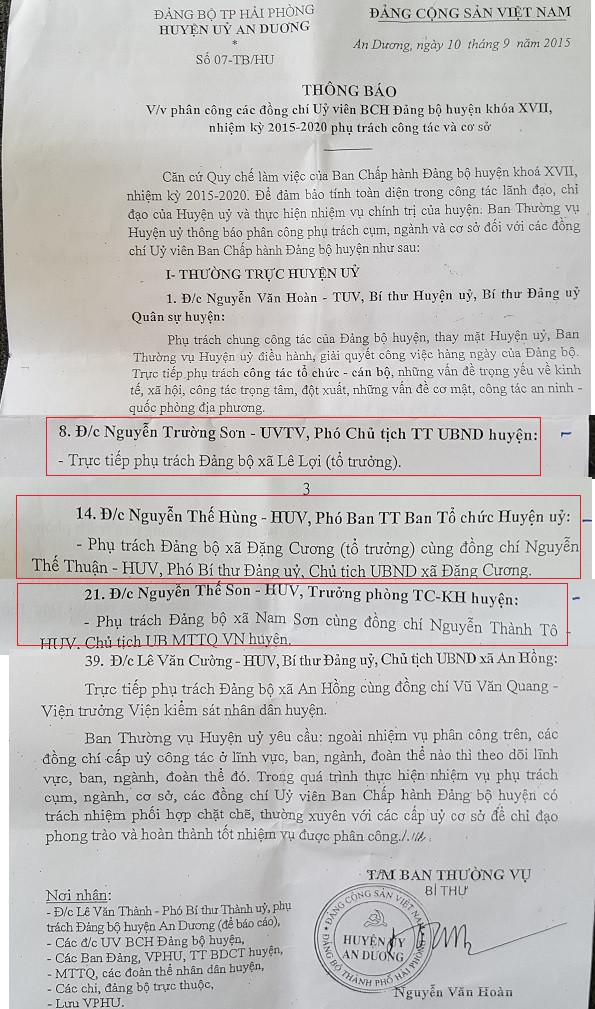 Như vậy, “đại gia đình” ông Nguyễn Trường Sơn đã có 6 người đang nắm những chức danh quan trọng tại Huyện ủy, UBND huyện An Dương.