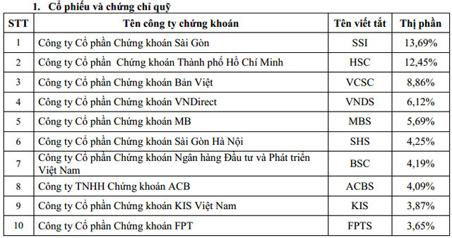 Các cái tên còn lại như MBS, BSC, VCBS, VNDS, MIS dù lọt top 10 nhưng thị phần không đáng kể, dưới 1%.