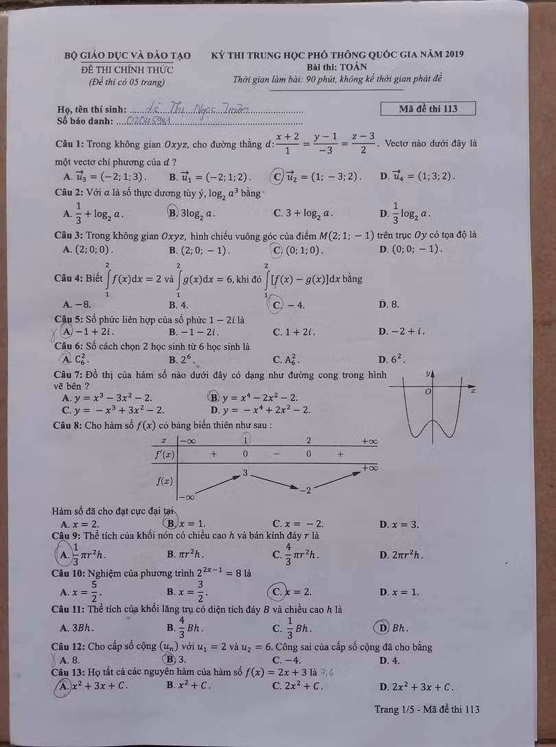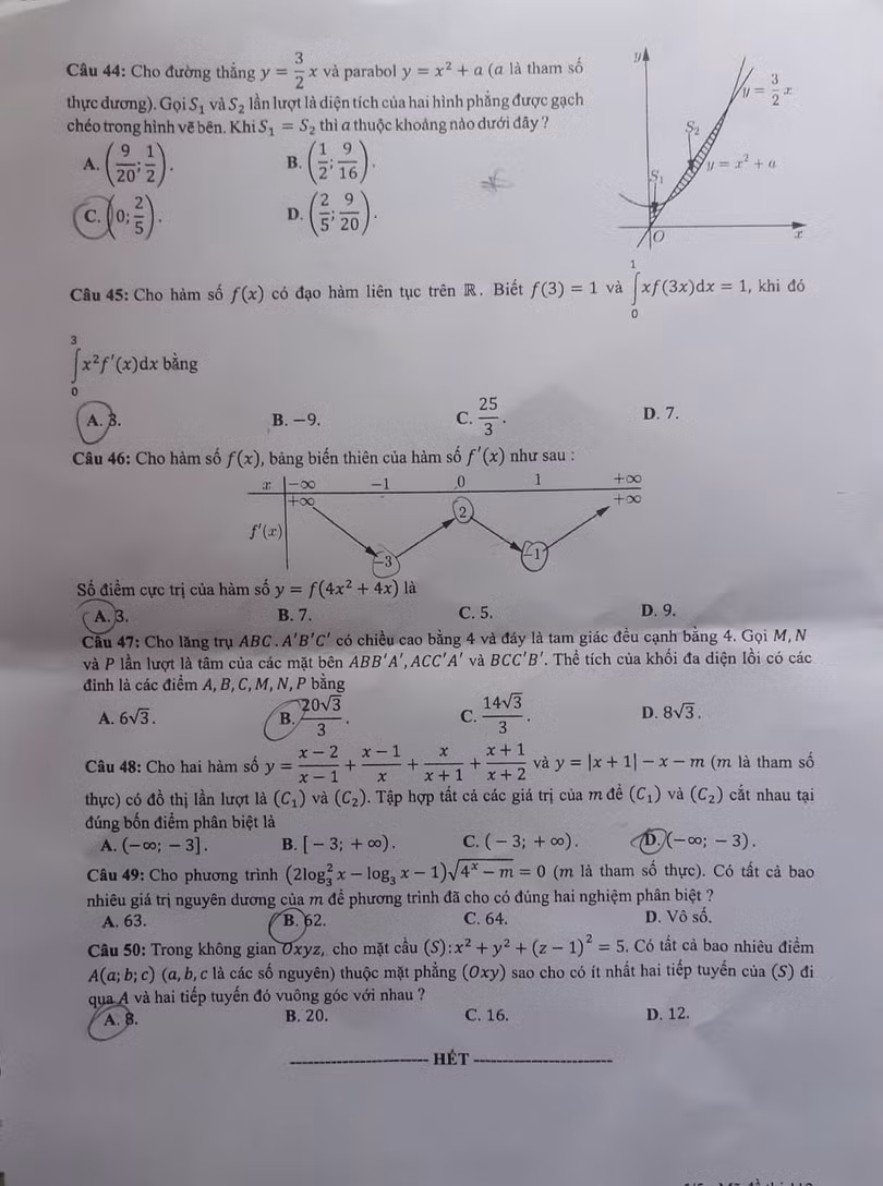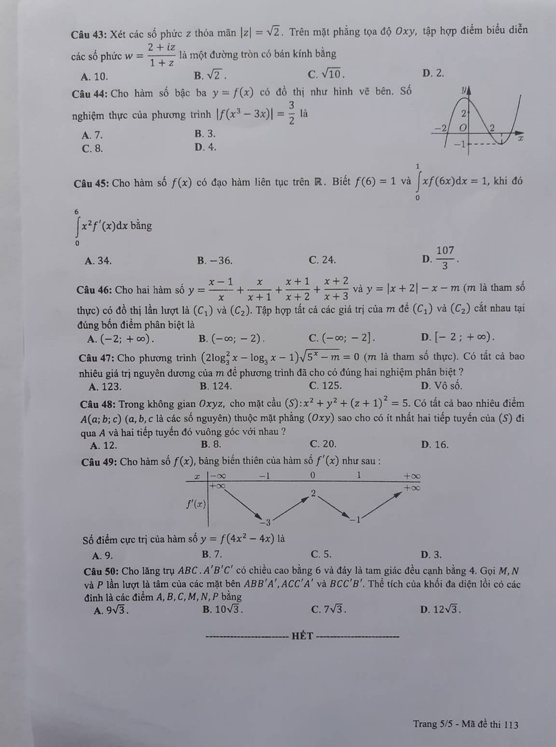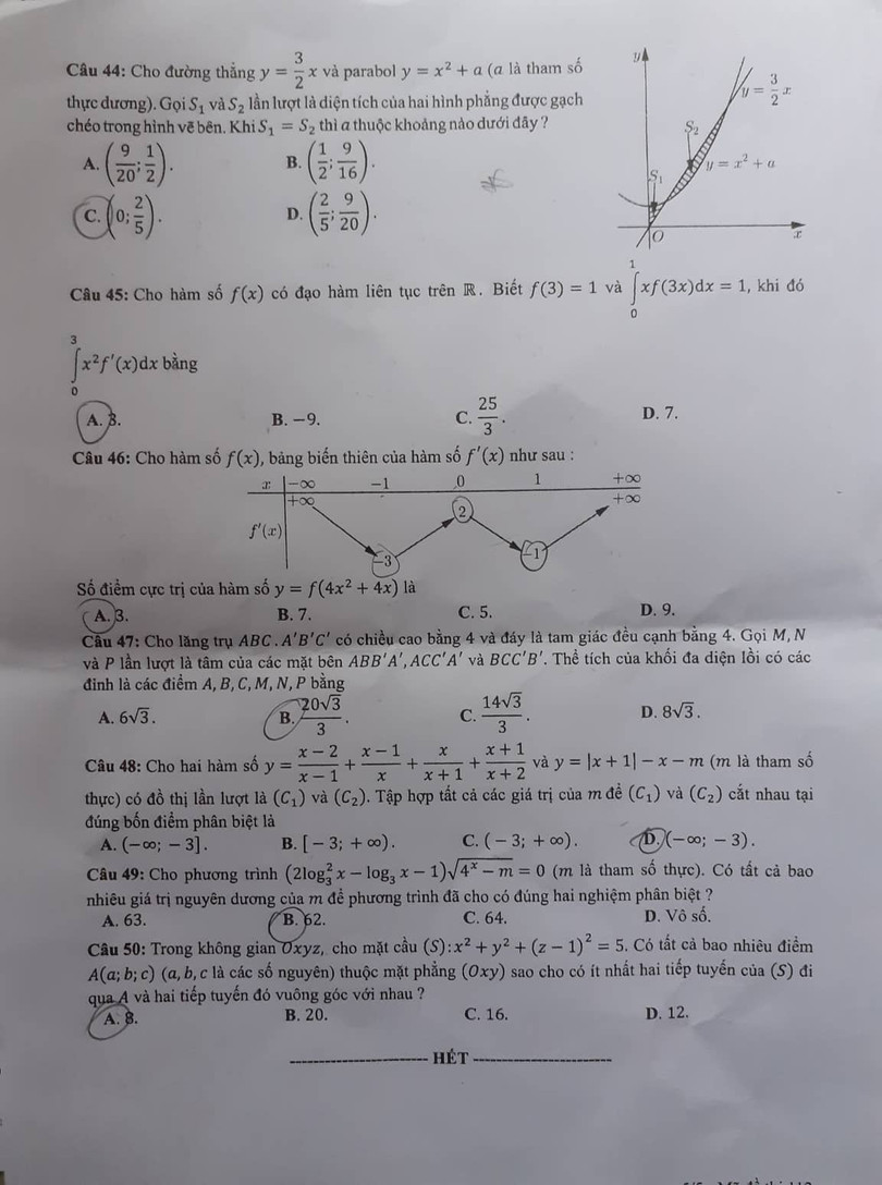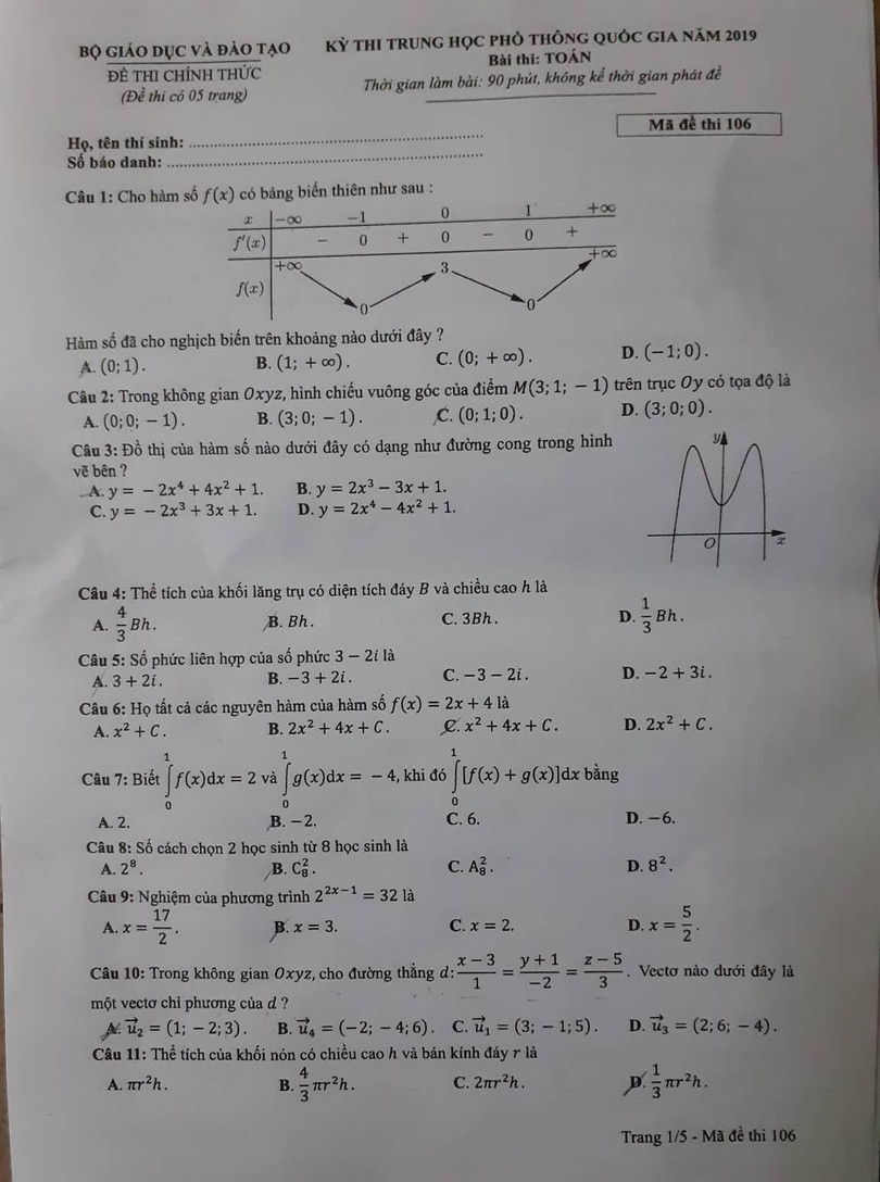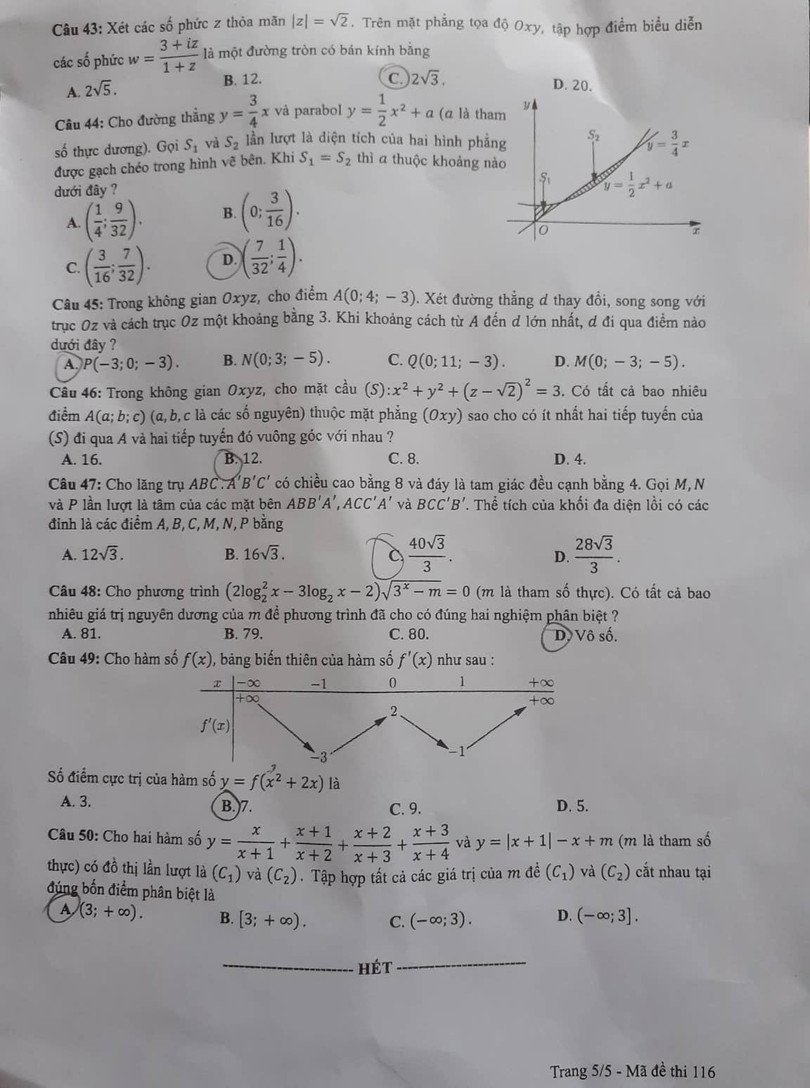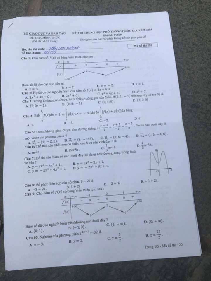 VietTimes -- Chiều nay (25/6), hơn 880.000 thí sinh dự thi môn Toán, Kỳ thi THPT quốc gia năm 2019, chiếm 99,50% tổng số thí sinh đăng ký dự thi. VietTimes xin gửi tới độc giả đề thi và hướng dẫn giải chi tiết 24 mã đề thi môn Toán của Ban chuyên môn TUYENSINH247.COM.
