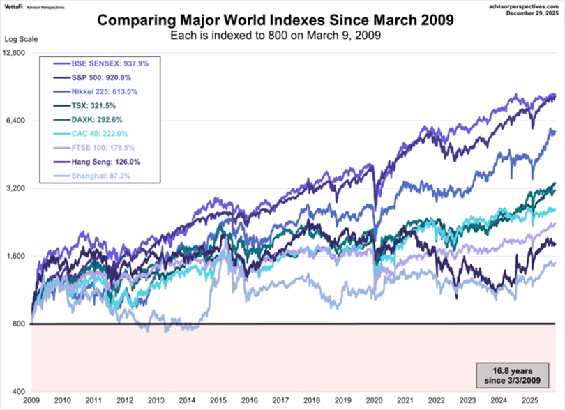 Năm 2025 khép lại với nhiều tín hiệu tích cực trên thị trường chứng khoán toàn cầu, khi phần lớn các thị trường lớn duy trì đà tăng trưởng mạnh bất chấp bối cảnh kinh tế – địa chính trị thế giới còn tiềm ẩn rủi ro.