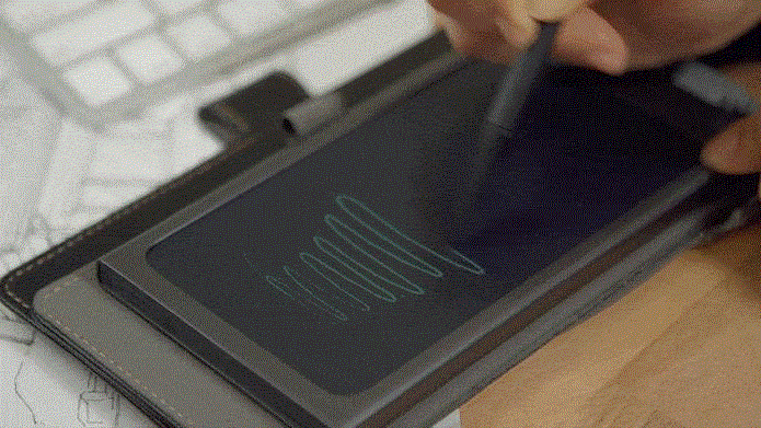 Tuy nhiên, như đã nói, điều khiến Memomate đặc biệt nằm ở màn hình đen trắng e-ink độc đáo. Màn hình này được trang bị cảm ứng lực đem lại trải nghiệm viết vẽ trên bề mặt chân thực, dù phần mềm hỗ trợ có phần quá đơn giản. Không có bất kỳ lựa chọn nào để lưu lại ghi chú vừa viết, chỉ một nút Delete duy nhất cho phép xóa sạch toàn bộ màn hình để viết lại giống như bảng tập viết cho trẻ em vậy. Lời khuyên chính thức từ công ty sản xuất Memomate đó là người dùng nên dùng smartphone để scan lại màn hình.