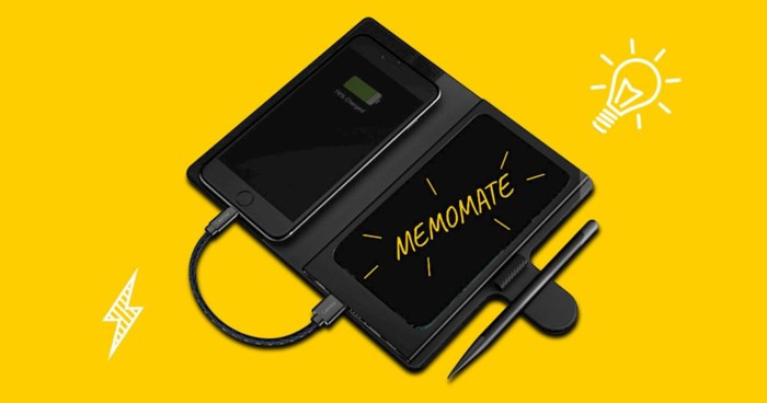 Cùng với sự phát triển vượt bậc của công nghệ di động, cuốn sổ tay giờ đây đã trở thành vật dụng xa lạ với cuộc sống hằng ngày, thay vào đó, chúng ta sử dụng smartphone cho hầu như tất cả mọi việc, từ mua hàng tới thanh toán trực tiếp không cần thẻ hay chụp ảnh quay phim, và dĩ nhiên việc ghi chú nhanh cũng không nằm ngoài ngoại lệ. Tuy nhiên thực tế đã chứng minh rằng smartphone càng đảm nhận được nhiều việc hơn thì thời lượng pin sử dụng lại càng thất vọng hơn, và ngành công nghiệp sản xuất pin sạc rời cũng nhờ vậy mà nở rộ. Vậy tại sao không tích hợp thêm tính năng ghi chép vào một cục sạc rời vốn đã có diên tích bề mặt lớn để chứa nhiều năng lượng? Cuối cùng thì Memomate, một thiết bị tới từ Lepow có màn hình e-ink đen trắng 6,5 inch cho phép ghi chép bằng bút stylus đồng thời sạc điện thoại qua viên pin dung lượng 10.000 mAh đã kết hợp thành công hai yếu tố vào làm một.