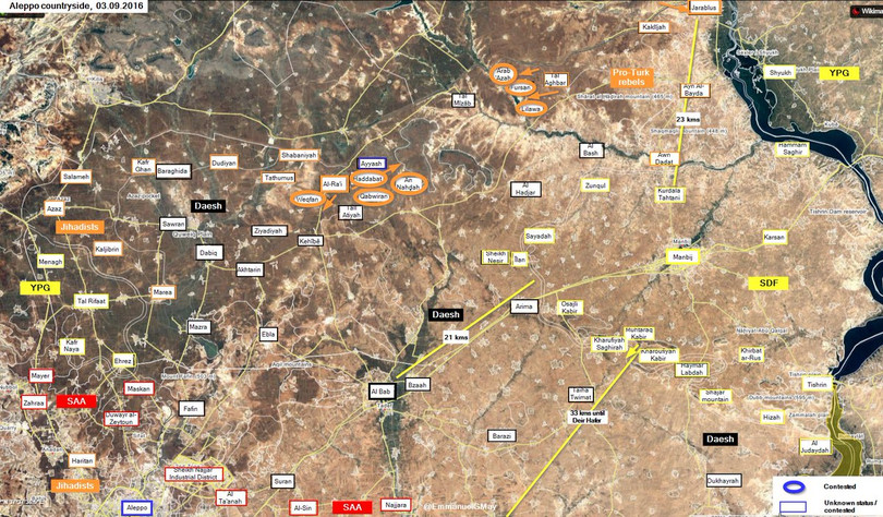 Ahmed Othman, một chỉ huy thuộc nhóm Hồi giáo cực đoan nổi dậy Sultan Murad do Thổ Nhĩ Kỳ hậu thuẫn, tuyên bố với đài AFP ở Beirut rằng tổ chức này đang chiến đấu trên trên hai mặt trận ở al-Rai, mặt trận phía nam và phía đông, tiến tới giải phóng các làng ở phía tây Jarabulus khỏi lực lượng khủng bố IS ".