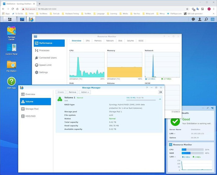 Để kiểm thử hiệu năng mẫu Red Pro 10TB, người viết đã thiết lập một hệ thống lưu trữ đơn giản với Synology DS218J và dùng chia sẻ dữ liệu với máy tính cá nhân trong cùng hệ mạng ở cấu hình RAID 0 lẫn SHR chạy ở chế độ dự phòng 1.