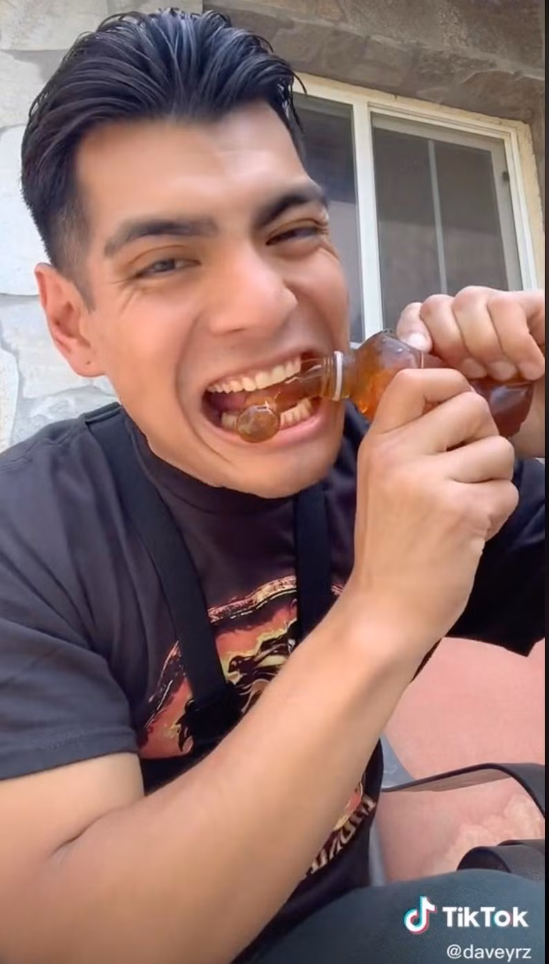 Đầu tháng 7, một TikToker có tên Dave Ramirez lần đầu tải lên clip ngắn, ghi lại cảnh mình dùng hai tay bóp chặt một chai đông lạnh. Thứ nước mật ong màu vàng óng chảy ra và Dave đưa vào miệng thưởng thức.
