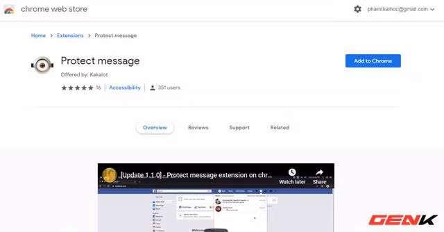 Trước hết, bạn cần truy cập vào địa chỉ https://chrome.google.com/webstore/detail/protect-message/fgnnjldhcpkgffephopliioangockjgk và cài đặt Protect Message cho Google Chrome.