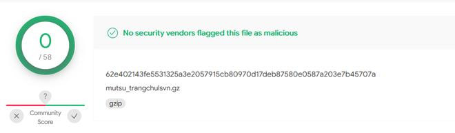 Sau khi quá trình upload file và kiểm tra kết thúc, VirusTotal sẽ hiển thị thông tin về mức độ "sạch" của file. Nếu kết quả hiển thị là "No security vendors flagged this file as malicious", nghĩa là không có phần mềm bảo mật nào phát hiện dấu hiệu khả nghi của file mà bạn đã kiểm tra, đồng nghĩa với việc file này "sạch" và bạn có thể an tâm sử dụng.