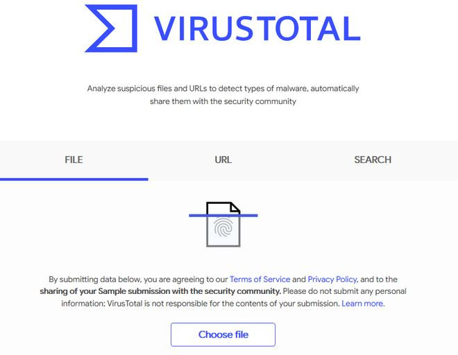 Lưu ý: VirusTotal hỗ trợ kiểm tra file có dung lượng tối đa 650MB. File dung lượng càng lớn, quá trình quét và kiểm tra sẽ càng mất nhiều thời gian.
