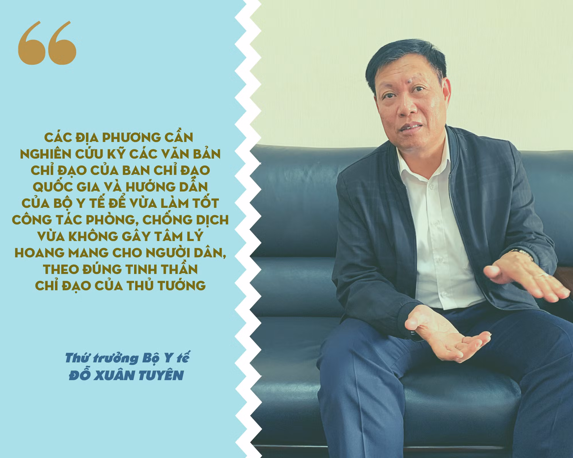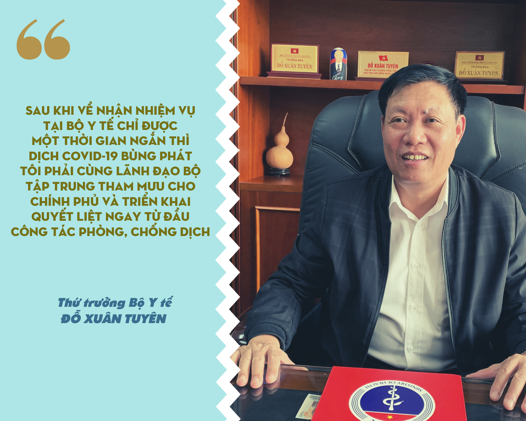 Thứ trưởng Đỗ Xuân Tuyên: Sau khi về nhận nhiệm vụ tại Bộ Y tế chỉ được một thời gian rất ngắn thì dịch COVID-19 bùng phát, tôi phải cùng lãnh đạo Bộ tập trung tham mưu cho Chính phủ, Thủ tướng Chính phủ và triển khai quyết liệt ngay từ đầu công tác phòng, chống dịch. Đây là bệnh dịch mới nổi, nên bước đầu cũng phải tìm hiểu, nhưng tôi có thuận lợi là ở địa phương đã tham gia chỉ đạo và trực tiếp thực hiện công tác phòng, chống dịch khá lâu. Ca nhiễm SARS đầu tiên ở Việt Nam có liên quan đến địa phương tôi công tác, khi đó tôi cùng các đơn vị y tế của tỉnh trực tiếp tham gia chỉ đạo xử lý.
