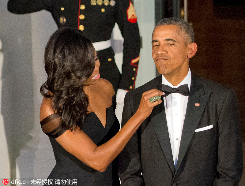 Ngày 25/9/2015, tại Washington, tổng thống Mỹ Obama tổ chức tiệc chiêu đãi chủ tịch Trung Quốc Tập Cận Bình, trong thời gian chờ đợi vợ chồng ông Tập Cận Bình, đệ nhất phu nhân Michelle Obama đã sửa lại nơ cho chồng.