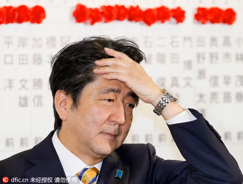 Ngày 14/12/2014, tại Tokyo, thủ tướng Nhật Bản Shinzo Abe chỉnh đốn lại mái tóc cho mình ở trụ sở của Đảng Tự Dân.