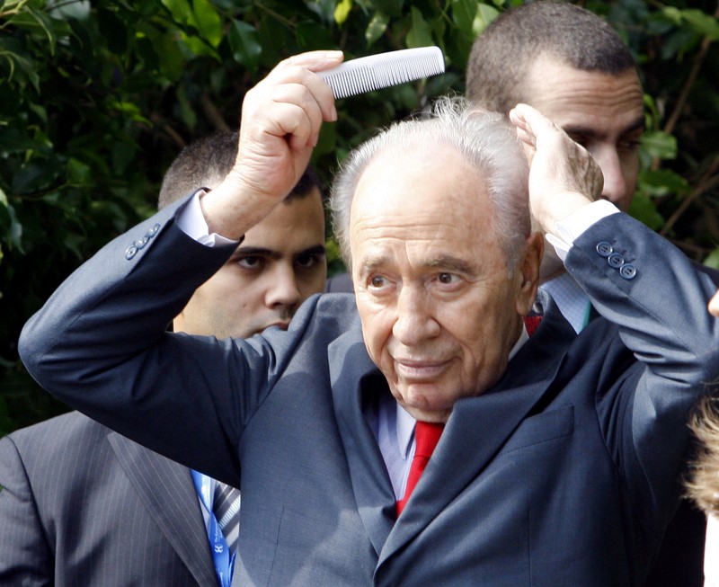 Ngày 6/9/2008, tổng thống Israel khi đó là Shimon Peres tham gia hội nghị các nhà lãnh đạo chính trị thương mại. Trong ảnh, ông Peres đang lấy lược chải đầu.