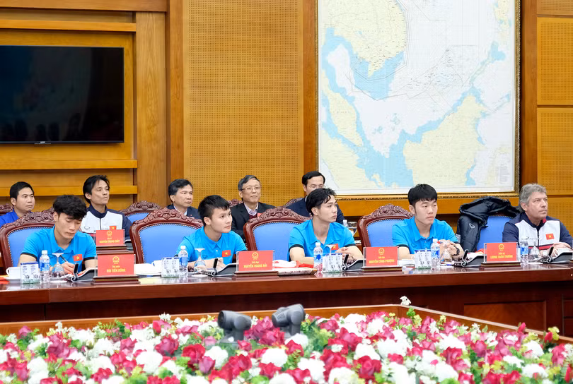 Vào 18h48, các cầu thủ đến trụ sở Chính phủ, dưới sự chào đón nồng nhiệt của Thủ tướng, lãnh đạo các bộ, ngành và cán bộ, nhân viên Văn phòng Chính phủ. Chưa bao giờ, chưa có cuộc gặp nào mà Thủ tướng đã đợi lâu đến vậy.