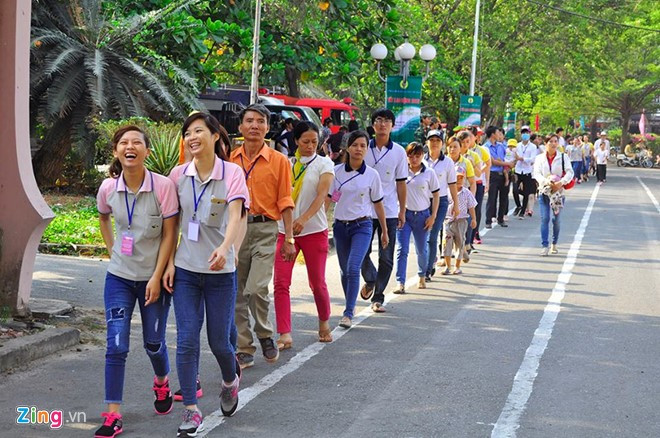 Từ 7h sáng, hàng trăm công nhân háo hức xếp hàng dự cuộc gặp Thủ tướng Nguyễn Xuân Phúc tại nhà thi đấu Biên Hòa. Nhiều người trong số họ vừa mới tan ca đêm đã vội vã đi đến nơi gặp mặt. Ảnh: Ngọc An.