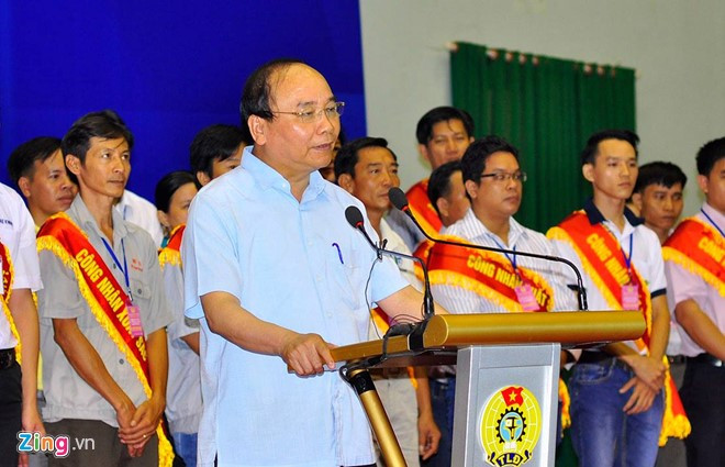 "Tôi mới hỏi công nhân ở đây, có anh chị em mói thấp nhất 5 triệu, cao nhất 10 triệu. Tôi thấy mức sống anh em công nhân còn khó khăn. Trước tình hình trên, Hội đồng tiền lương nhà nước, cùng cơ quan chức năng, thảo luận cùng công đoàn, nâng lương năm nay lên 12%. Mức lương như vậy là hợp tình hợp lý, thể hiện sự quan tâm của Đảng, Nhà nước, góp phần quan trọng nâng cao đời sống công nhân. Việc tăng lương giúp công nhân có đời sống tốt hơn năm trước. Chúng tôi hiểu rằng một bộ phận công nhân còn khó khăn và Nhà nước sẽ tiếp tục quan tâm nhiều hơn nữa", Thủ tướng nói.