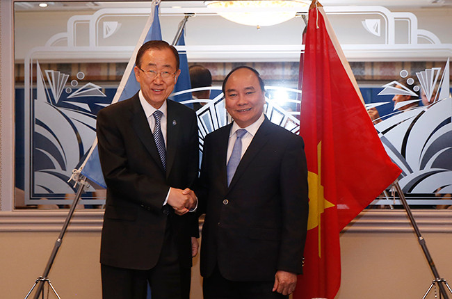 Trong cuộc hội kiến với Tổng Thư ký Liên hợp quốc Ban Ki Moon, Thủ tướng Chính phủ Nguyễn Xuân Phúc khẳng định Việt Nam cam kết tích cực tham gia vào các nỗ lực của Liên hợp quốc vì một thế giới hòa bình và phát triển bền vững; tăng cường tham gia các hoạt động gìn giữ hòa bình Liên hợp quốc, phát huy vai trò thành viên tại các cơ quan Liên hợp quốc như Hội đồng nhân quyền, Hội đồng kinh tế xã hội.