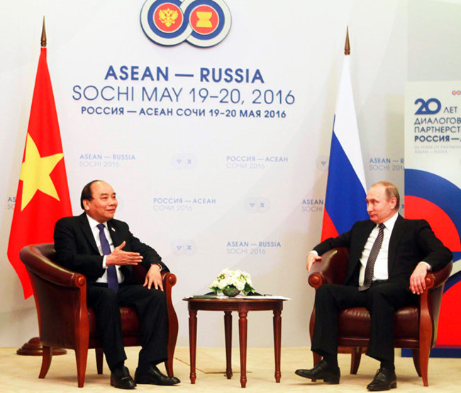 Thủ tướng Nguyễn Xuân Phúc và Tổng thống V. Putin đã trao đổi về nhiều vấn đề quốc tế và khu vực cùng quan tâm, nhất trí tiếp tục phối hợp chặt chẽ tại các diễn đàn đa phương như Liên hợp quốc, APEC, ASEM, ASEAN ... Thủ tướng Nguyễn Xuân Phúc chúc mừng Liên bang Nga đăng cai tổ chức Hội nghị cấp cao ASEAN - Nga và tin tưởng Hội nghị sẽ thành công tốt đẹp, đưa quan hệ ASEAN - Nga bước sang giai đoạn phát triển mới, khẳng định tiếp tục tăng cường hợp tác giữa Việt Nam và Nga trong khuôn khổ ASEAN - Nga.