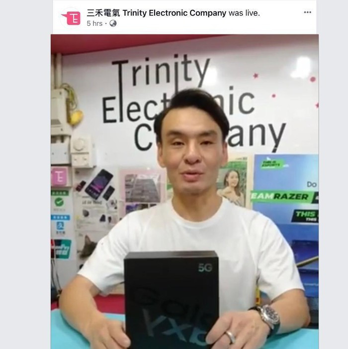 Công ty Trinity Electronic, nổi tiếng luôn có hàng điện thoại xách tay nước ngoài nhanh nhất tại Hong Kong, live stream trên Facebook lô Galaxy Fold đầu tiên mua từ chợ đen