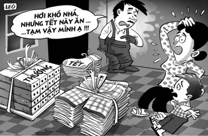 Những năm trước, nhiều doanh nghiệp khó khăn thậm chí phải thưởng Tết bằng sản phẩm. (Ảnh biếm họa: An ninh thủ đô)