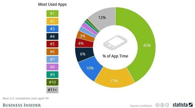 Người dùng tiêu tốn 75% lượng thời gian cho chỉ 4 ứng dụng yêu thích.