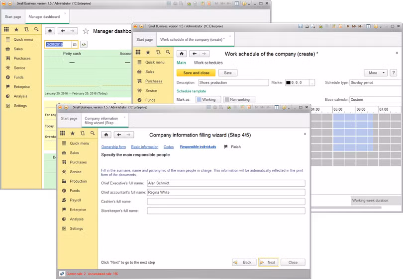 Về mặt kỹ thuật, 1C:Small Business cho phép các developer tự do tuỳ chỉnh mã nguồn nhưng các tác giả giữ quyền đóng một số module. Ứng dụng này có bản demo miễn phí và chạy trên nền tảng thương mại 1C:Enterprise 8.