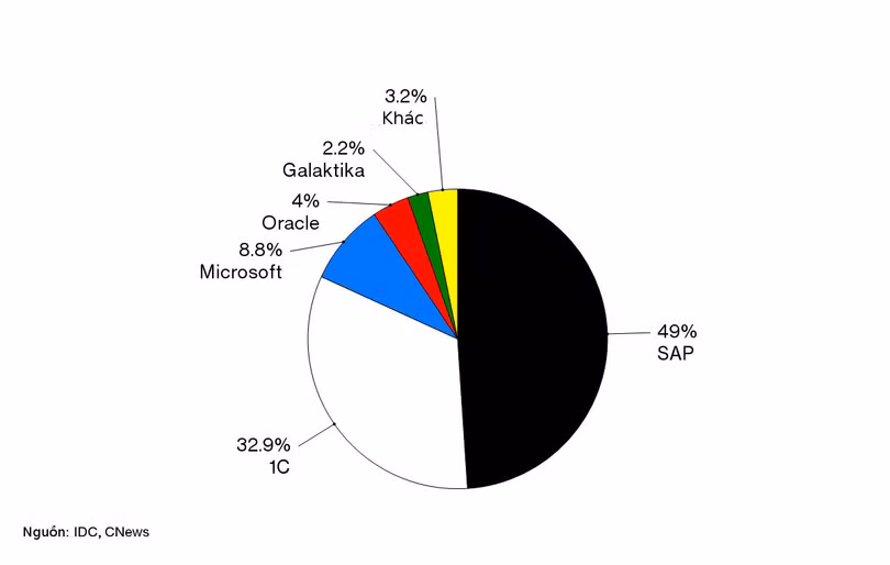 Ảnh: Thị phần phần mềm doanh nghiệp tại Nga năm 2016