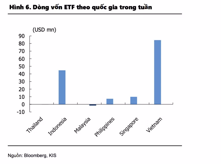 Việc vốn ETF vào Việt Nam tích cực dẫn dắt dòng vốn vào Đông Nam Á tăng cao nhất kể từ năm 2014, ghi nhận ở mức 145 triệu USD, riêng Việt Nam đã hút 85 triệu USD. Đáng chú ý, lực cầu đã quay trở lại và tăng mạnh trên các ETFs chủ đạo của Indonesia. Ngoài ra, Philippines và Singapore cũng nhận được lực cầu đáng kể trong tuần qua.