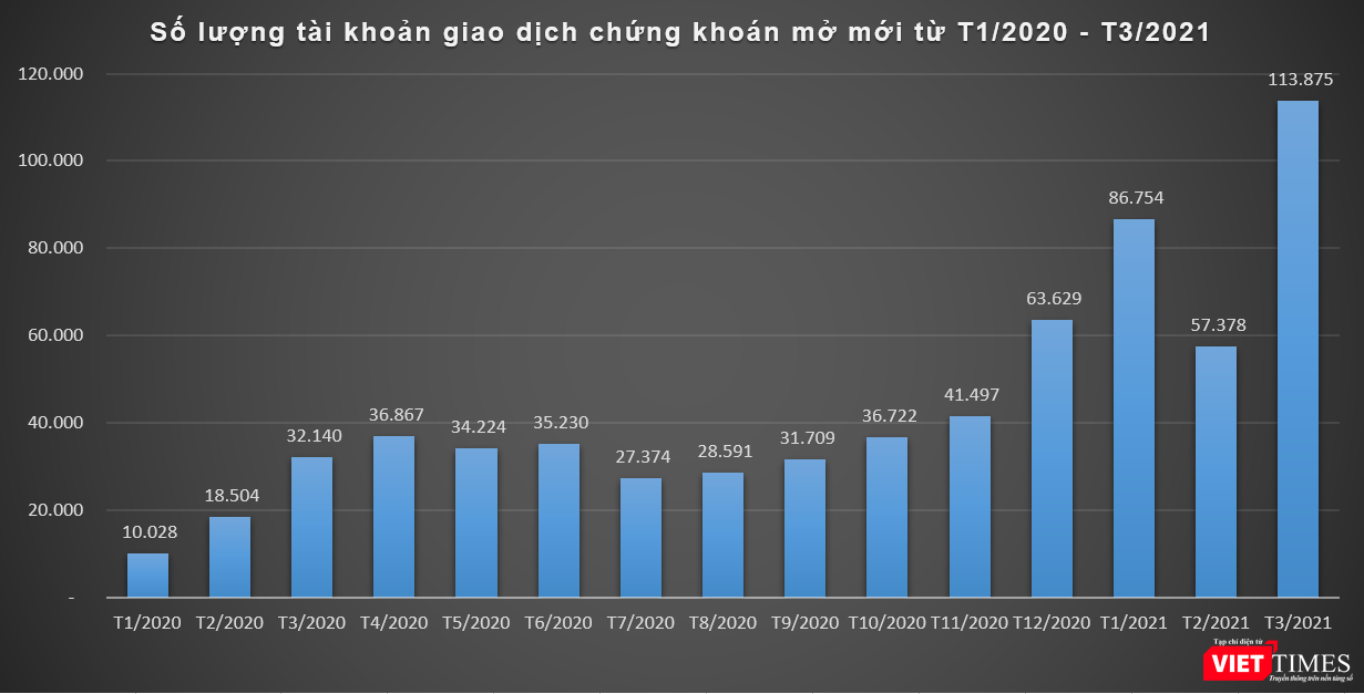 Việc lượng tài khoản chứng khoán mở mới liên tục lập đỉnh và chỉ số VN-Index chưa có dấu hiệu hạ nhiệt, dòng tiền từ nhà đầu tư mới liên tục nhập cuộc giúp thị trường trở nên khá vững vàng và mau chóng hồi phục sau những phiên điều chỉnh sâu.